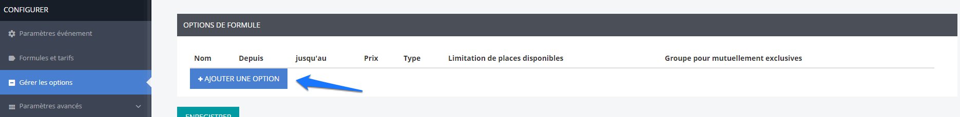 Dans le menu de gauche « configurer », rendez-vous sur « gérer les options » puis cliquez sur « ajouter une option »