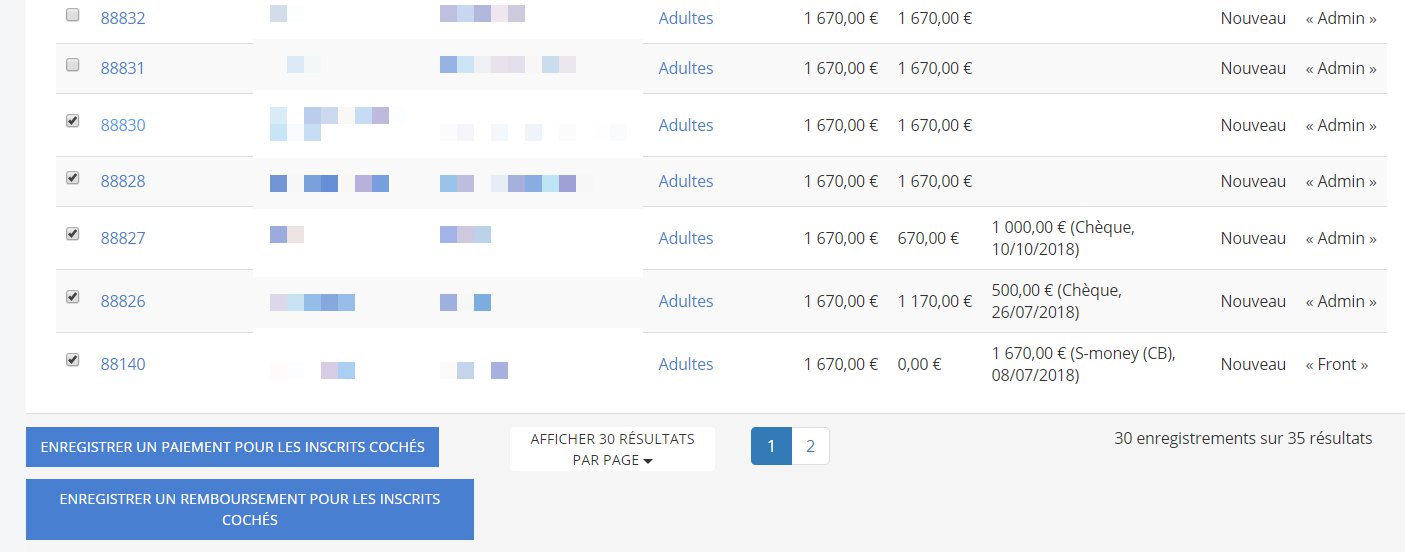 En bas de la liste des inscrits, vous avez la possibilité d’enregistrer un paiement pour les inscrits cochés