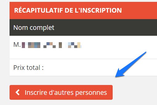 Depuis l’écran récapitulatif d’inscription d’une formule publique, il est possible de lier des inscriptions entre elles (cas par exemple d’un frère et d’une sœur, d’amis d’un même groupe d’aumônerie, d’époux…) en cliquant sur « inscrire d’autres personnes ».